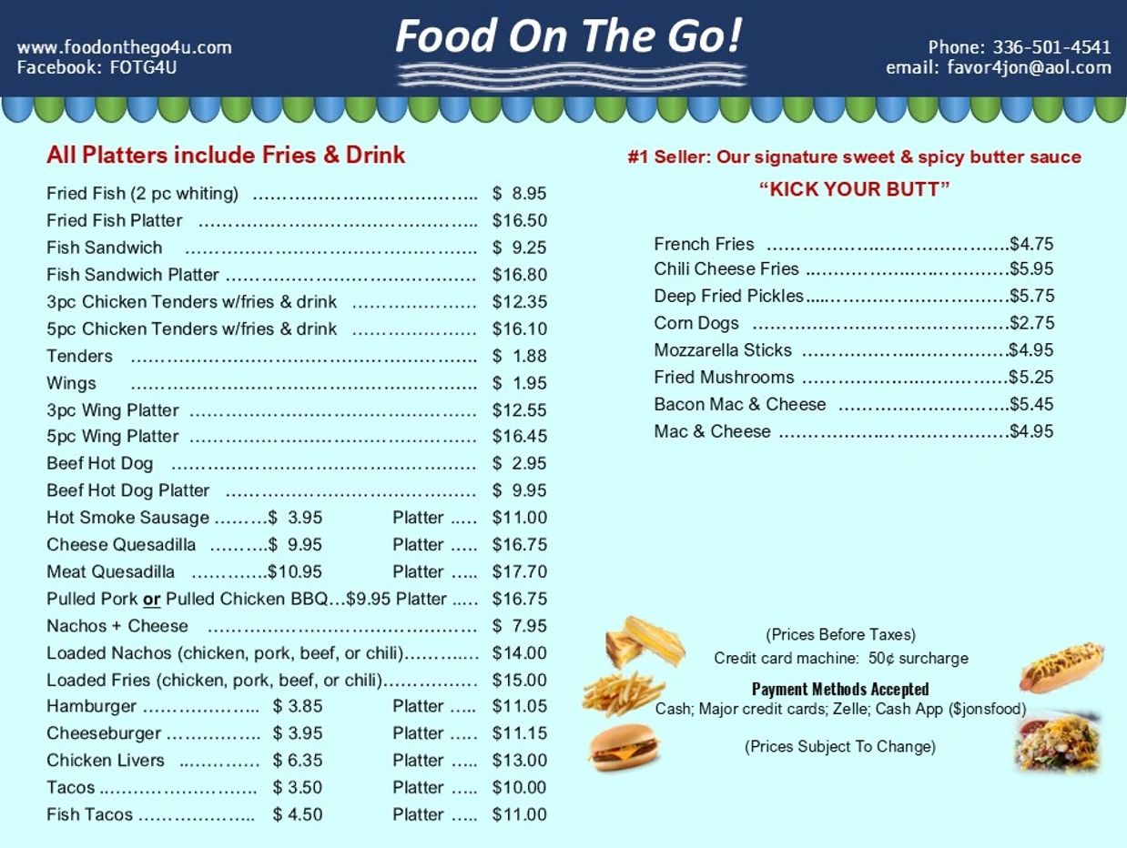 Hey Food on the Go!!! Thank you so much. That fish was off the chain. My friend is on the way to order some. I'm just Godly proud of you! The great food and philanthropy you displayed is amazing. New follower so I can help promote your business. God bless you all.