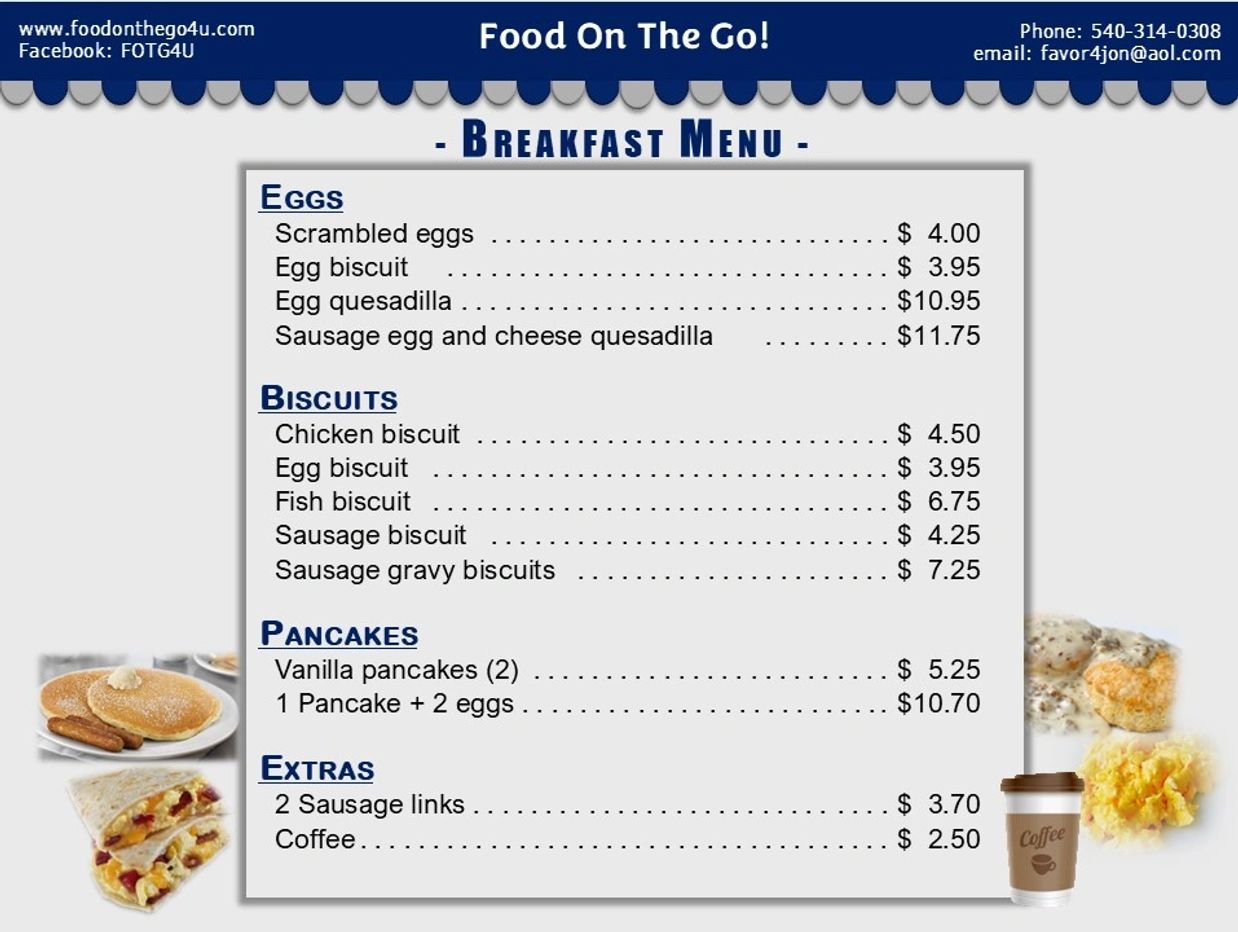 Numerous times I have patronized Food on the Go, and each time the food was delicious. It was served hot and made to order. I will order from them again!